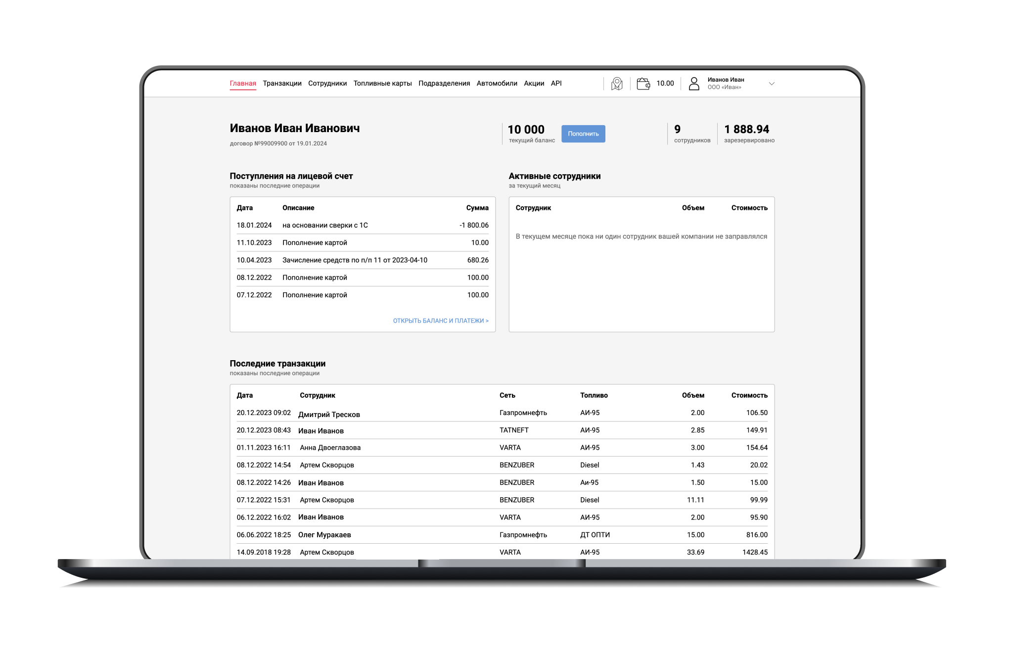 Добавляйте новых, выставляйте лимиты или личные балансы. По желанию можно выставить одометр для каждого сотрудник